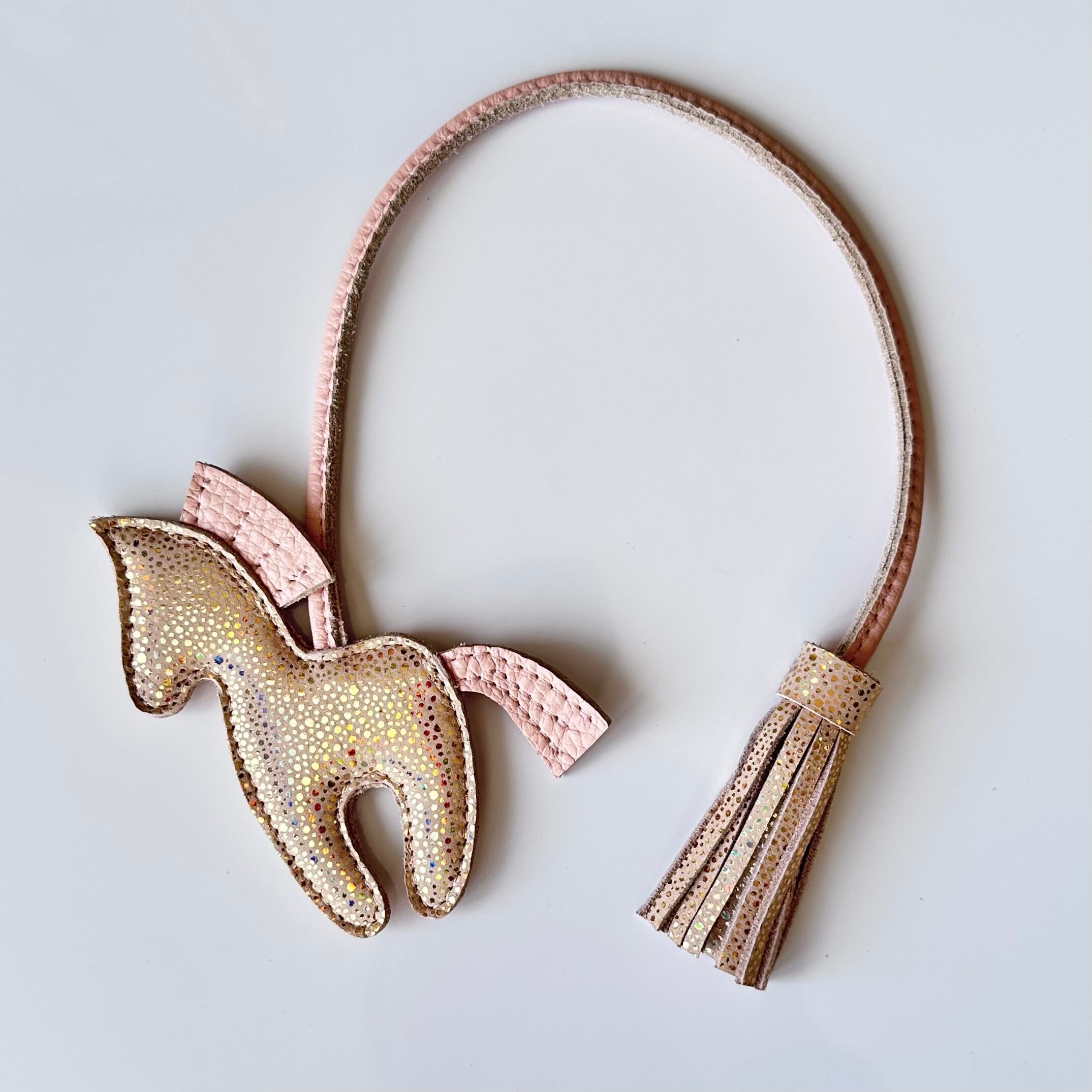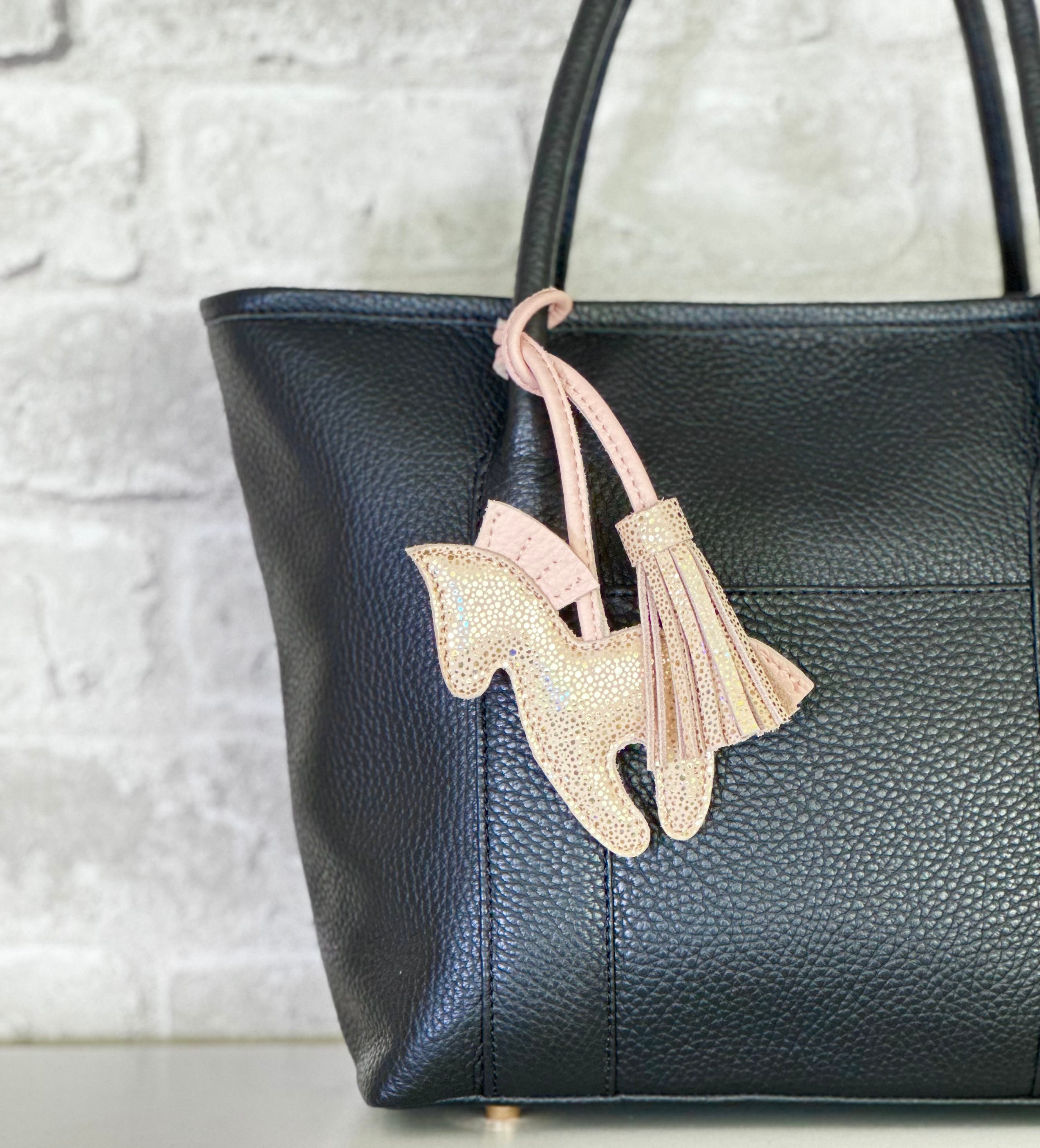 キラキラ可愛いウマとフリンジのダブルバッグチャーム。