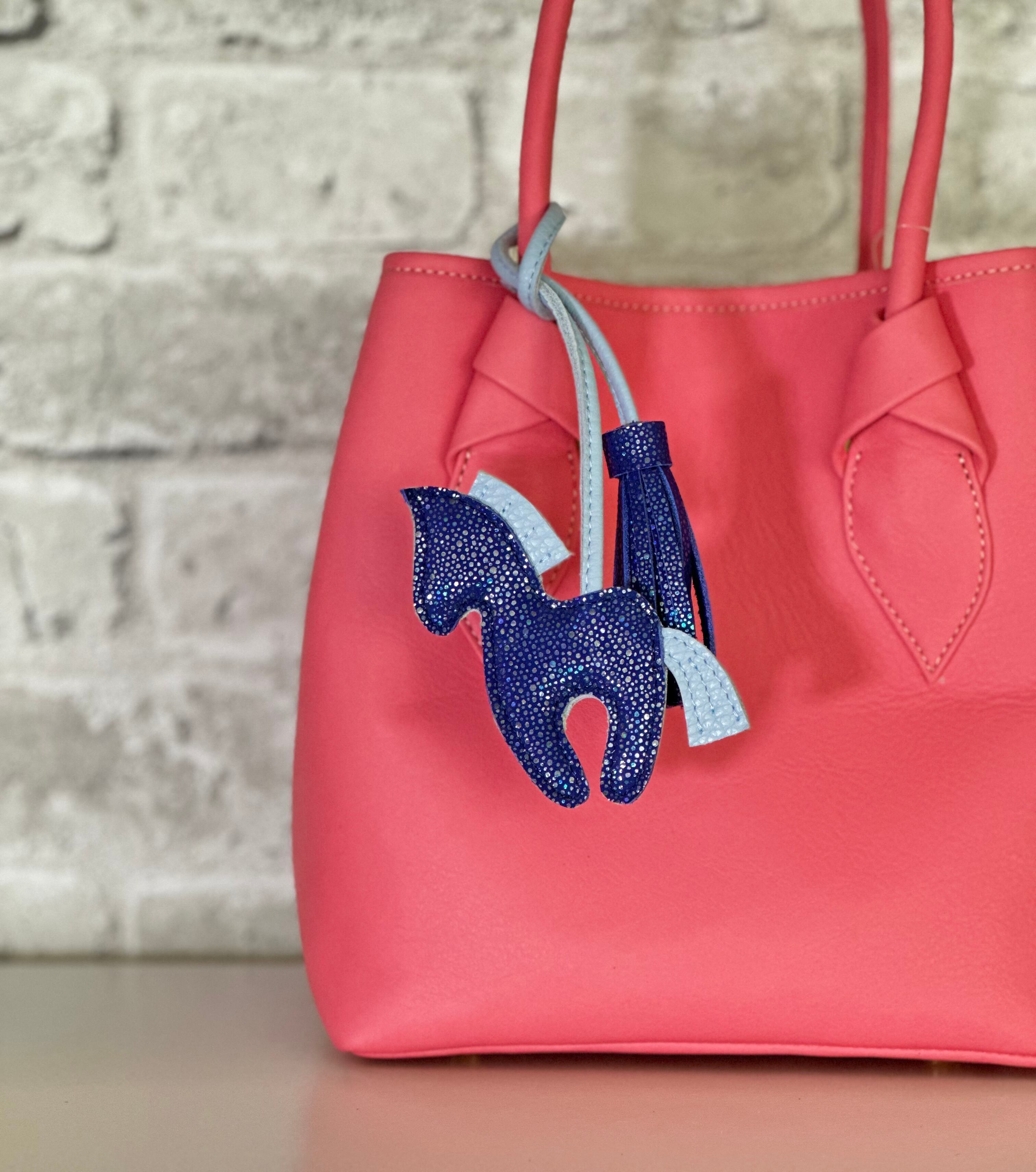 キラキラ可愛いウマとフリンジのダブルバッグチャーム。